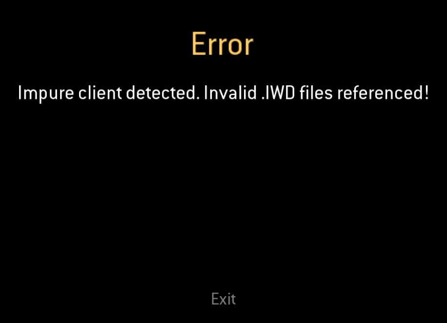 When I added the Promod mod (promodlive220_eu), we all now get this impure client error. None of us have modded .iwd files in main, I’ve fresh installed on Steam several times, I even went as far as installing the .iso and manually patching + manually updating to Cod4x - all without any change.